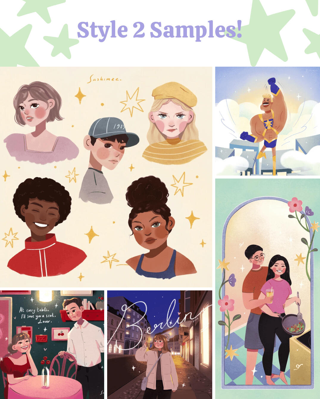Checkout my portfolio and work examples for more illustrations. Most of my art can be found on my Instagram 💗